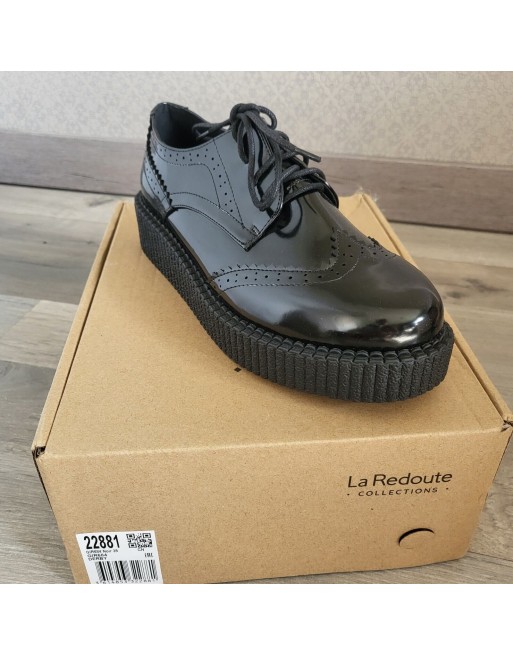 LA REDOUTE Mocassins vernis noir à talon compensé 4 cm à lacets taille 39