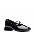 CLARKS Mocassins cuir noir brillant DAISS30 double bride Taille 36
