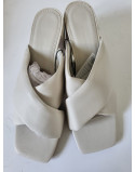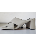 Mules beige talon carré 8.5 cm