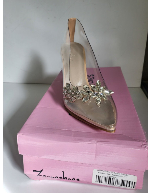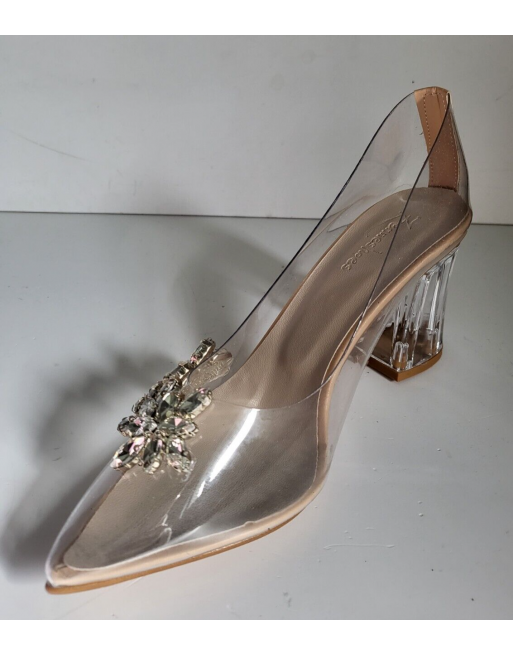 ZENNESHOES Escarpins transparents sertis pierres bijoux talon 8 cm Taille 37