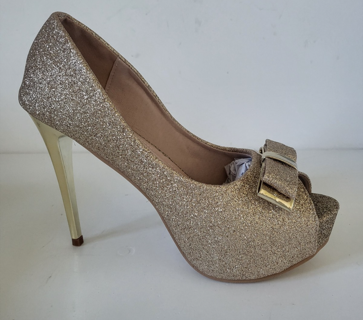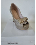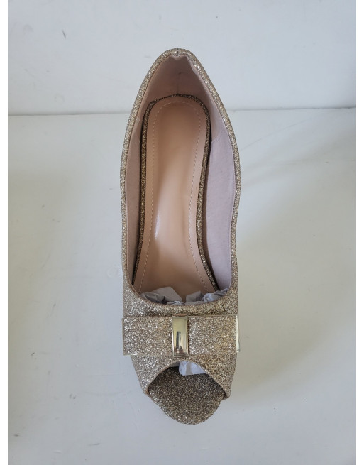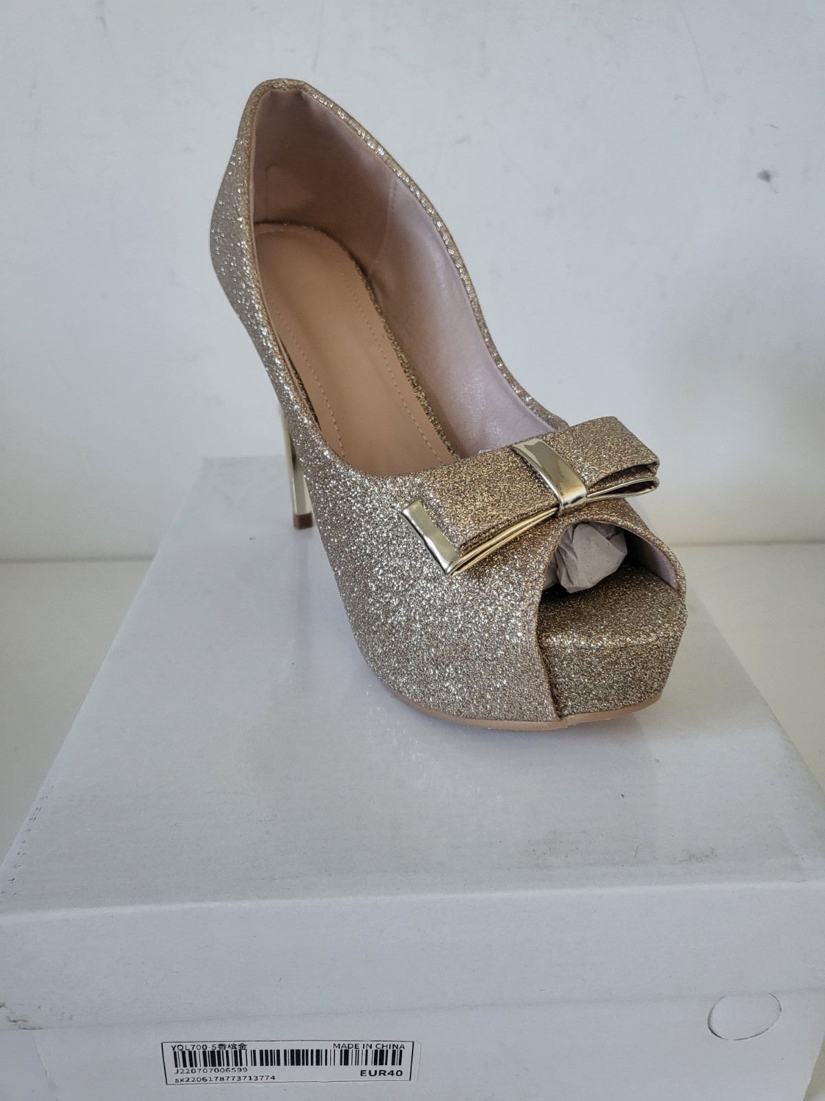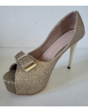 Escarpins ouverts dorés à talon aiguille très haut taille 40