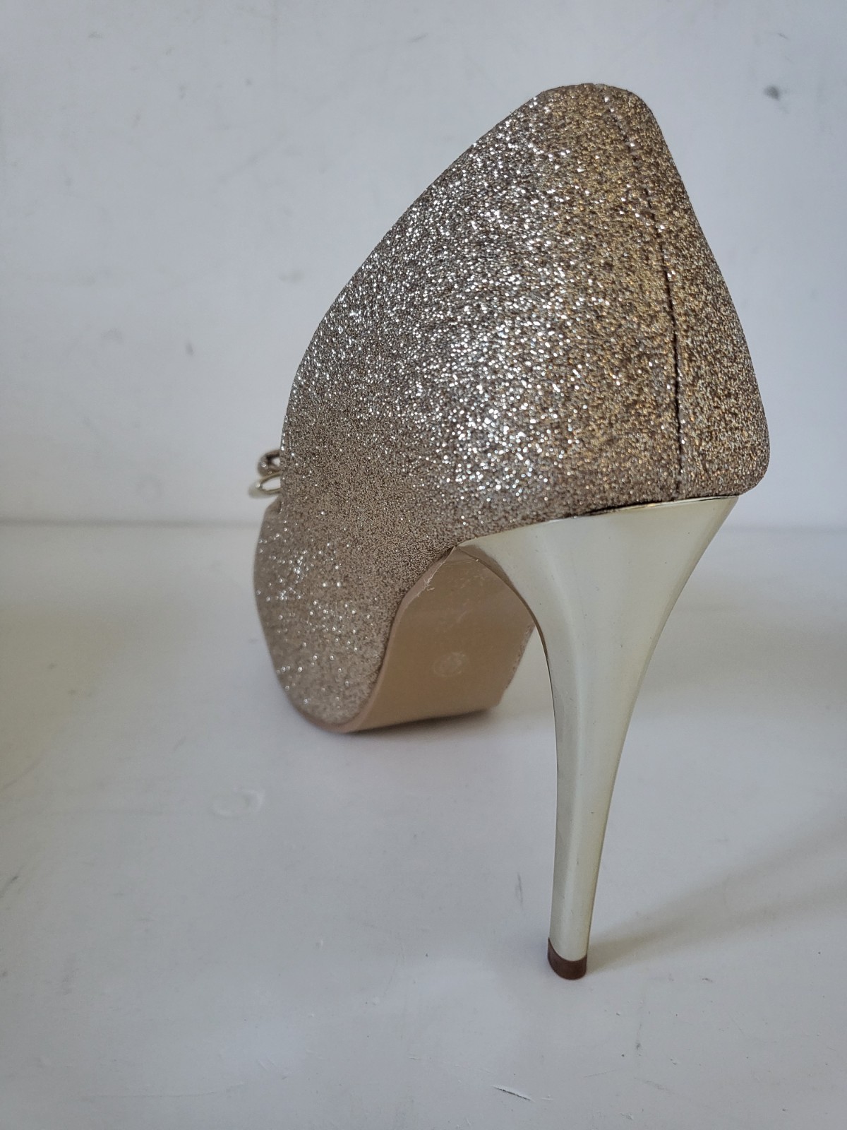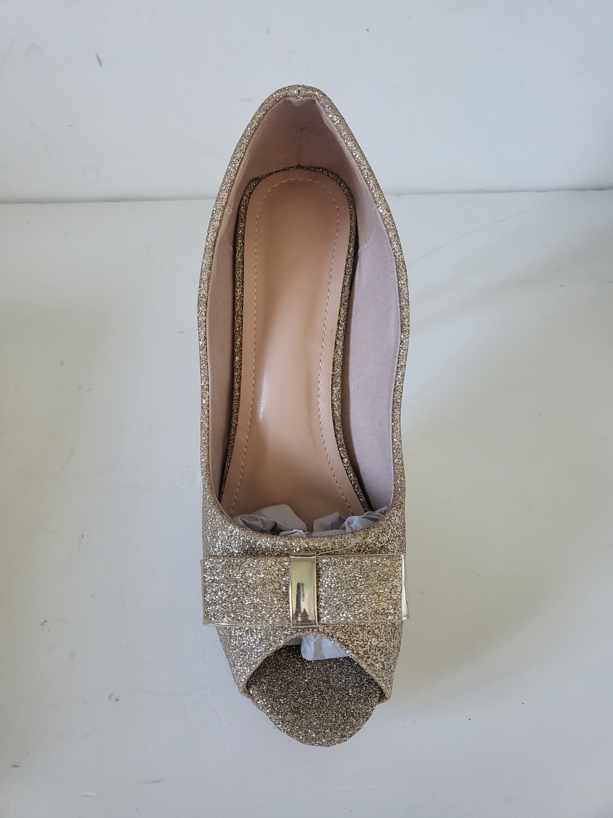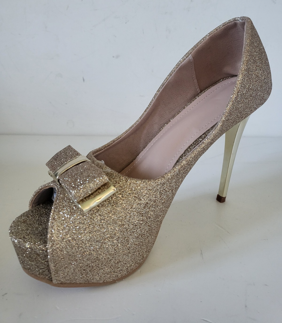 Escarpins ouverts dorés à talon aiguille très haut taille 40