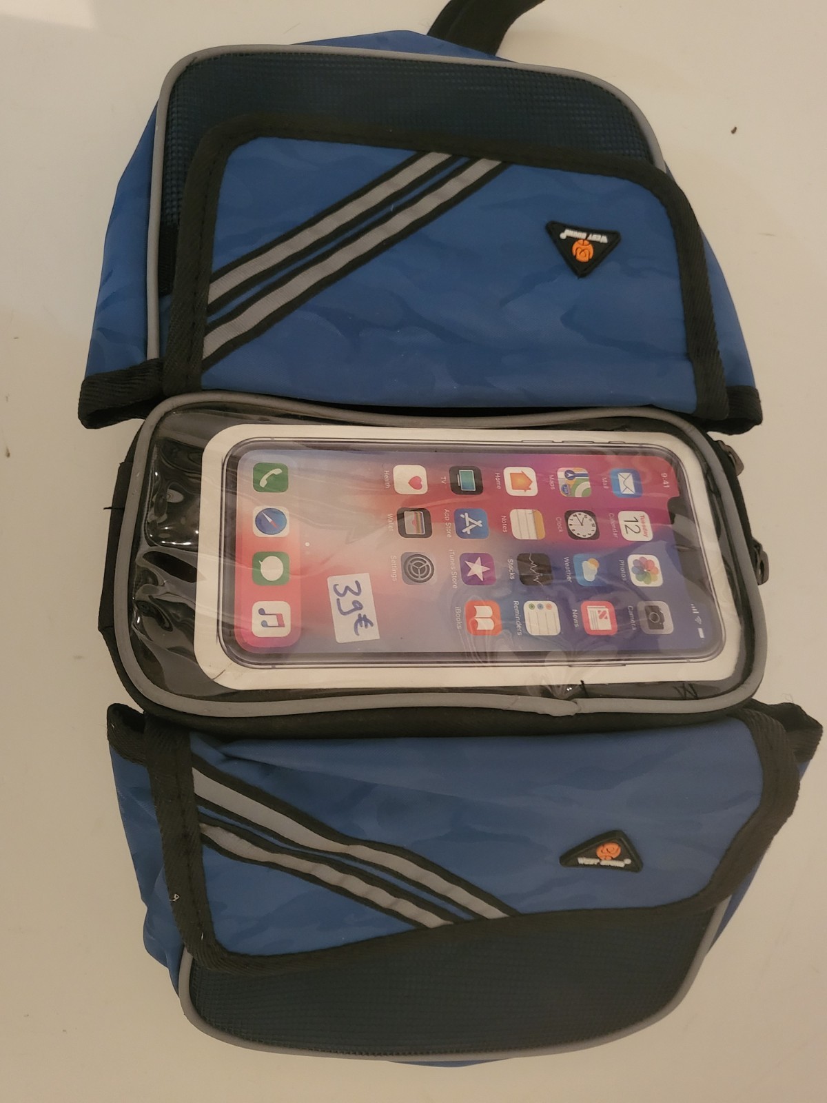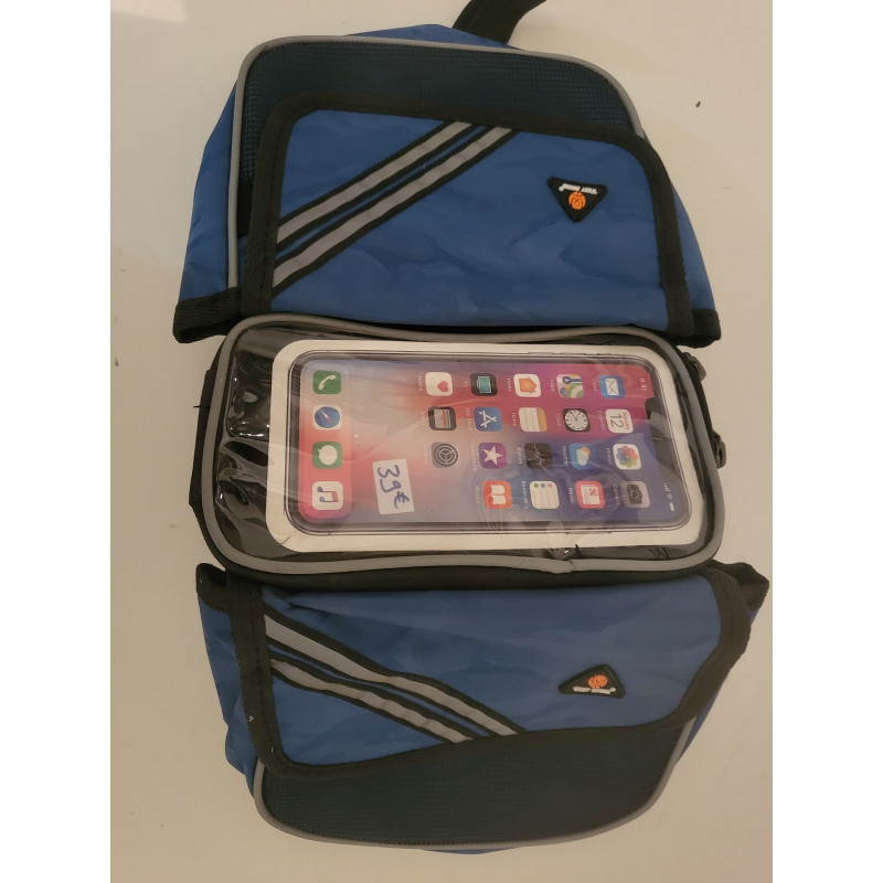 WEST BIKING Sacoche double bleue à scratch + pochette fermée pour téléphone