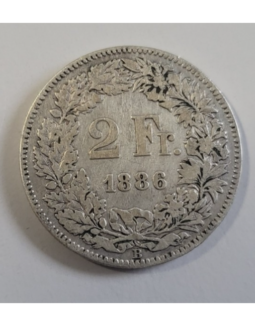 2 francs suisse argent Helvetia debout 1886 B (222)