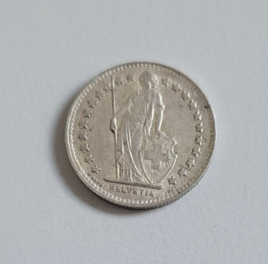 Avers : Helvetia, le personnage allégorique féminin suisse