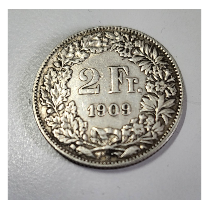 2 francs suisse argent Helvetia debout 1909 B (500)
