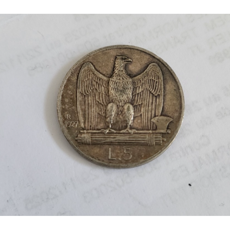 5 lires argent Victor Emmanuel III 1927R Italie (596)