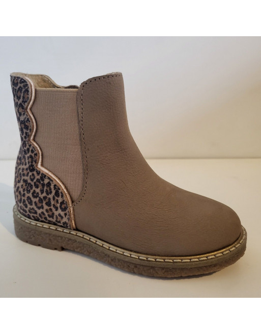 FRIBOO Bottines cuir taupe léopard fermeture éclair Taille 27