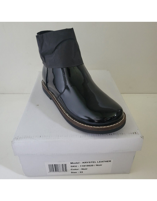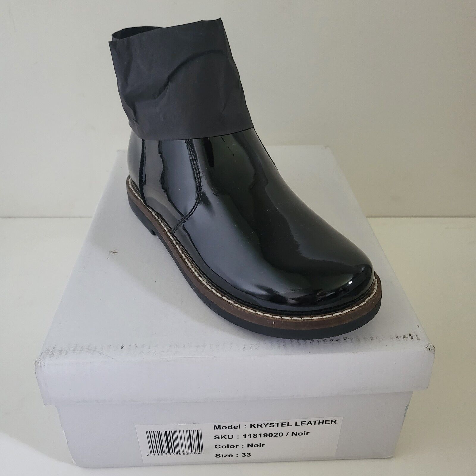 ROSE ET MARTIN Bottines cuir noir vernis fermeture éclair talon plat Taille 33