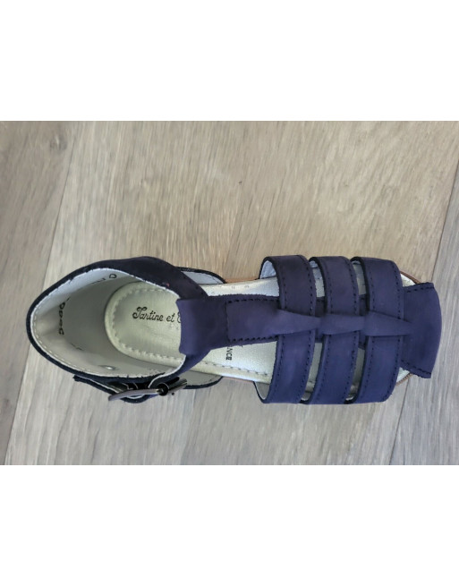 TARTINE & CHOCOLAT Sandales montantes cuir bleu marine Taille 23