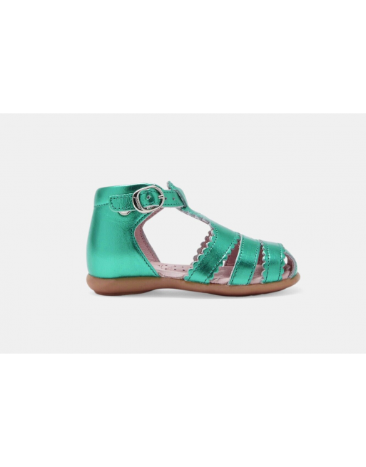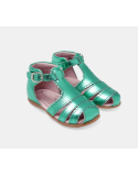 Sandales montantes Dinette vert métallisé à boucle cuir