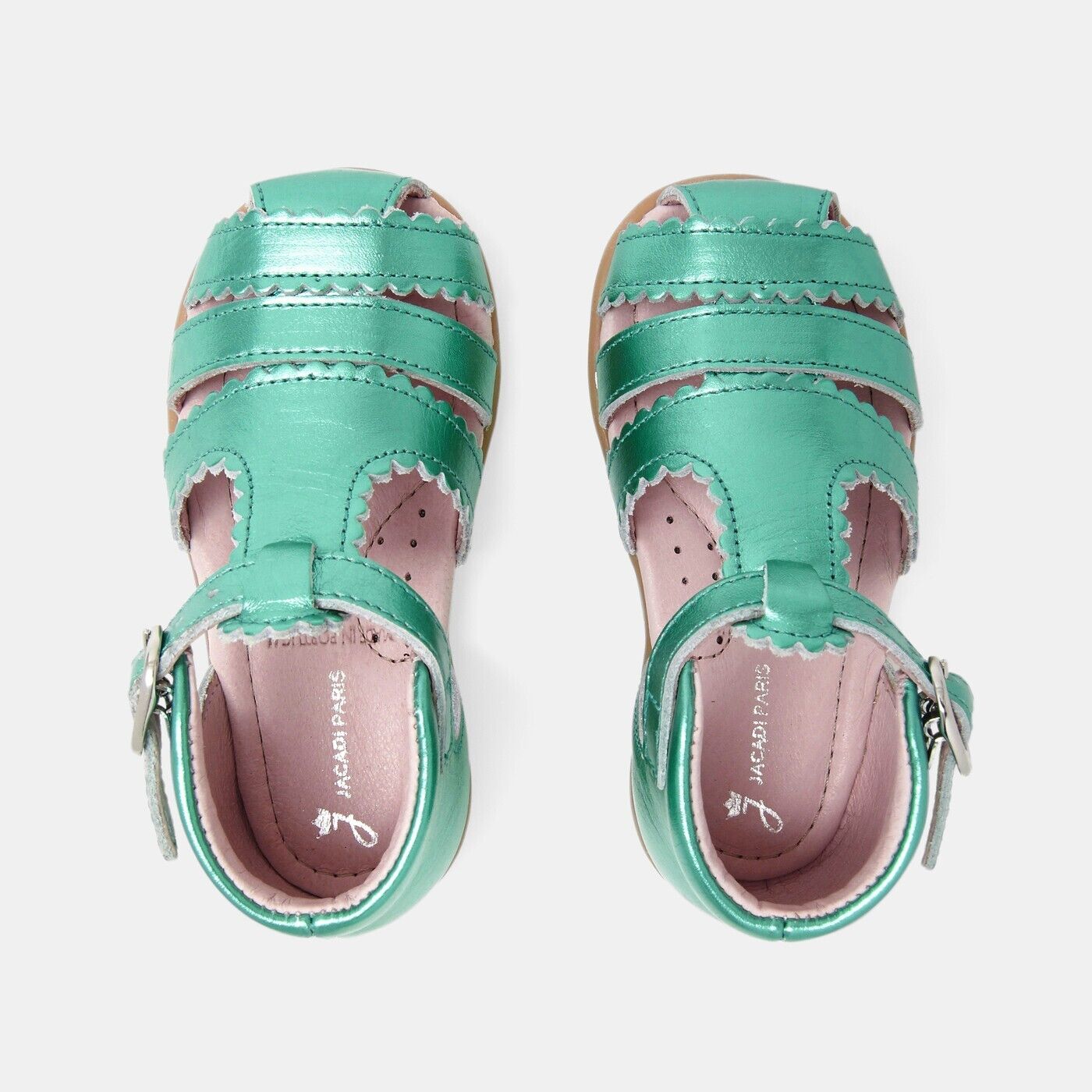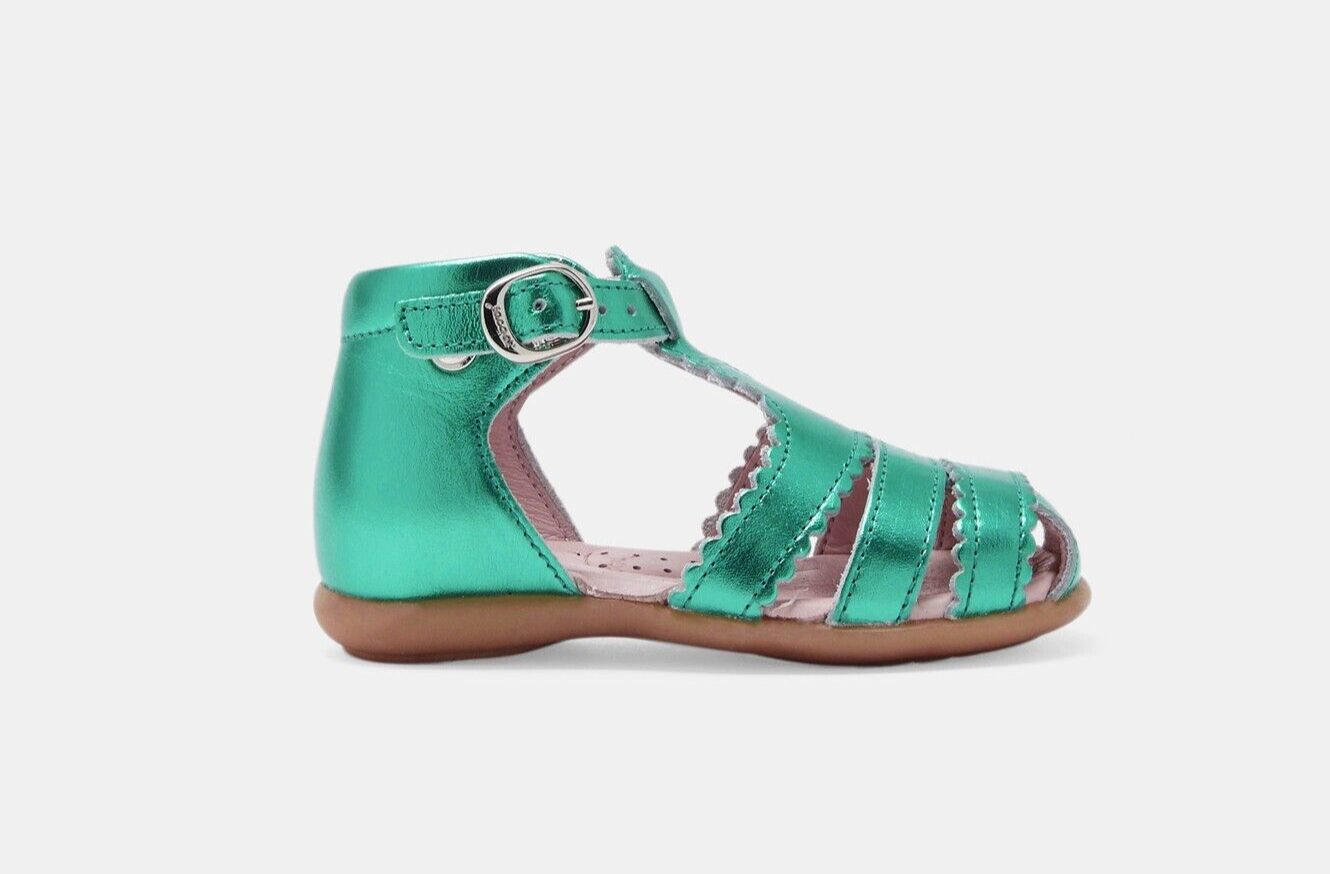 JACADI Sandales montantes Dinette vert métallisé à boucle cuir Taille 22