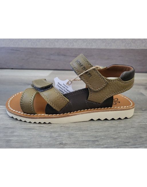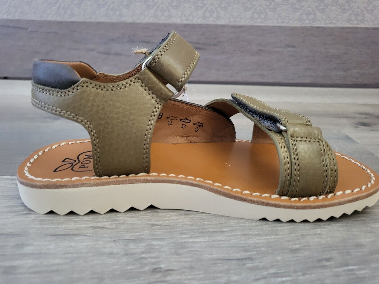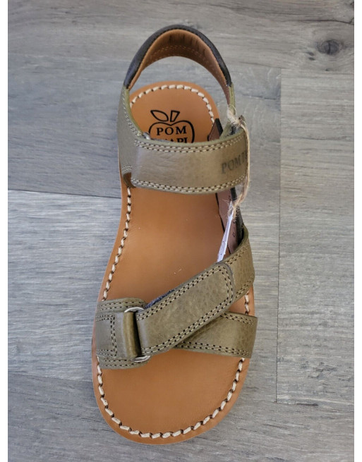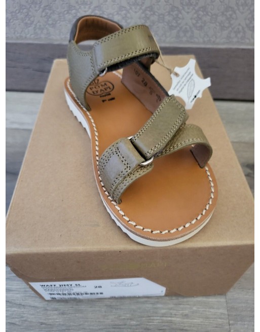 POM D'API Sandales cuir basses Waff Jimy SL kaki gris Taille 28