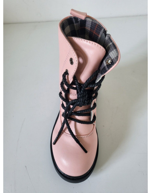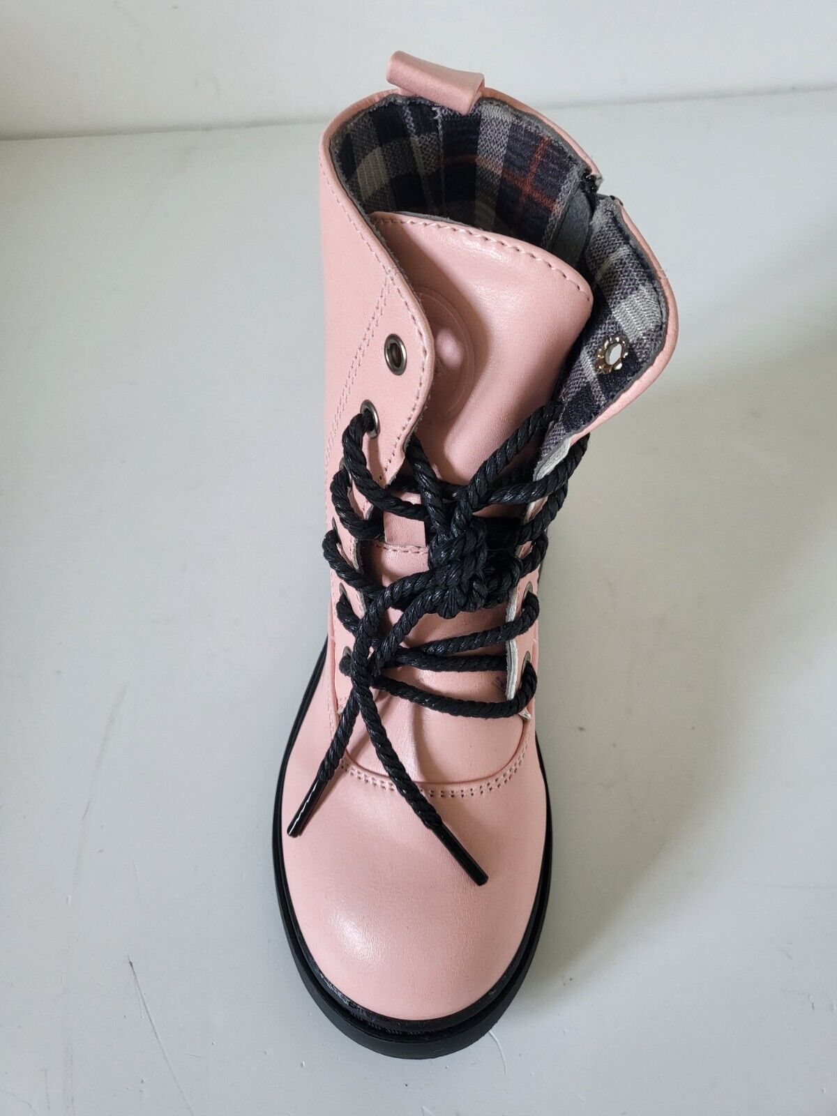 WUIWUIYU Bottes roses à lacets noirs zippées Taille 30