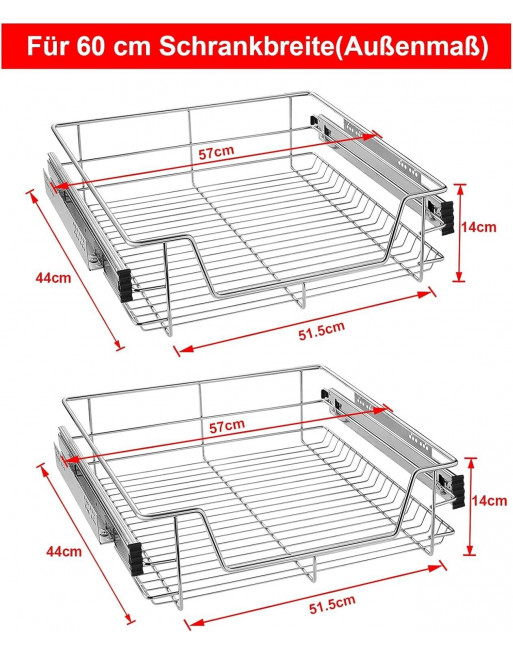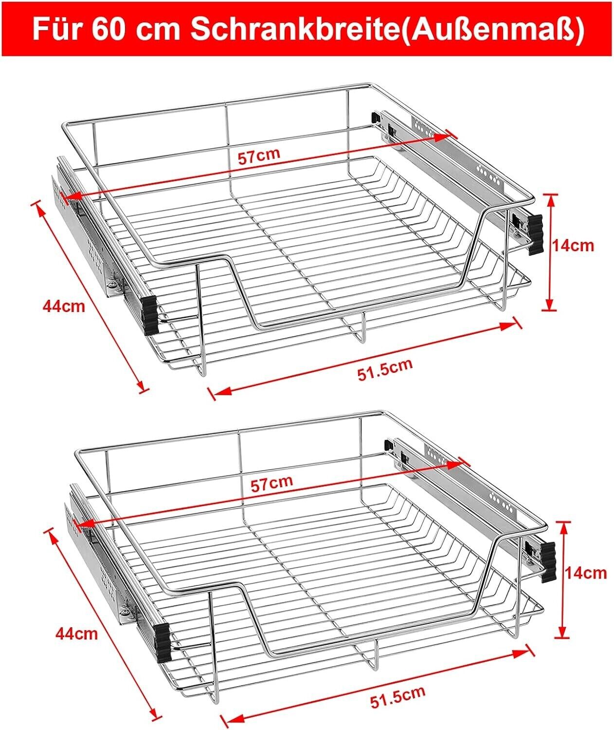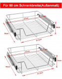 HENGMEI Pack de 2 tiroirs télescopiques de cuisine 60 cm