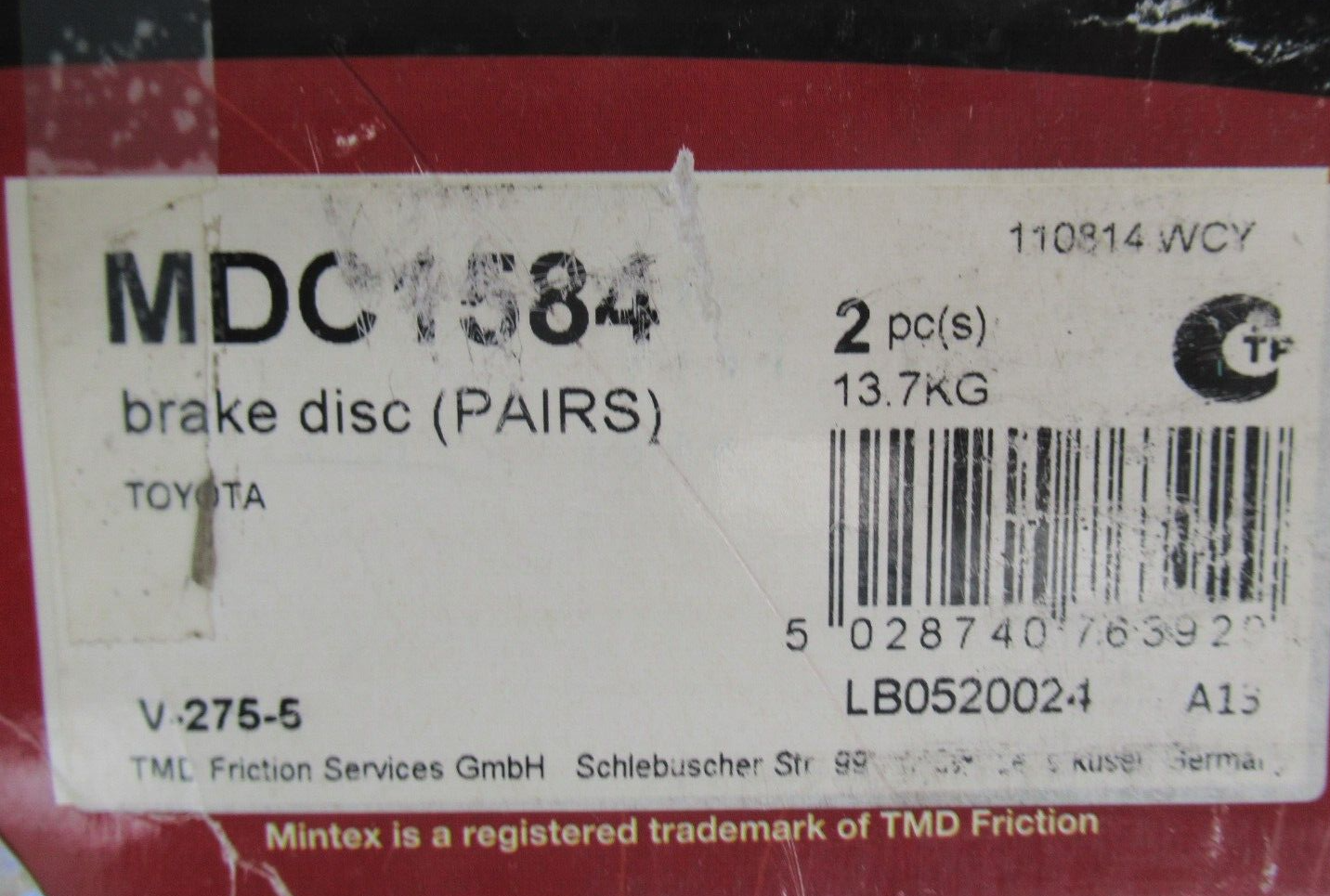 MINTEX MDC1584 LOT 2 DISQUES DE FREIN AVANT POUR TOYOTA