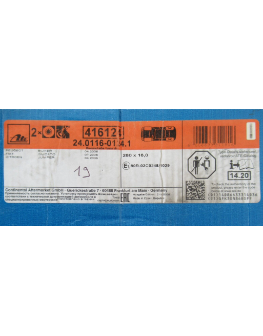 ATE 24.0116-0124.1DISQUES DE FREIN PLEIN POUR CITROEN FIAT PEUGEOT