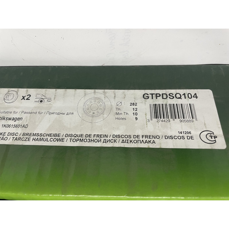 2x DISQUE DE FREIN ARRIERE POUR VOLKSWAGEN 1K0615601AD GTPDS0104. 141206