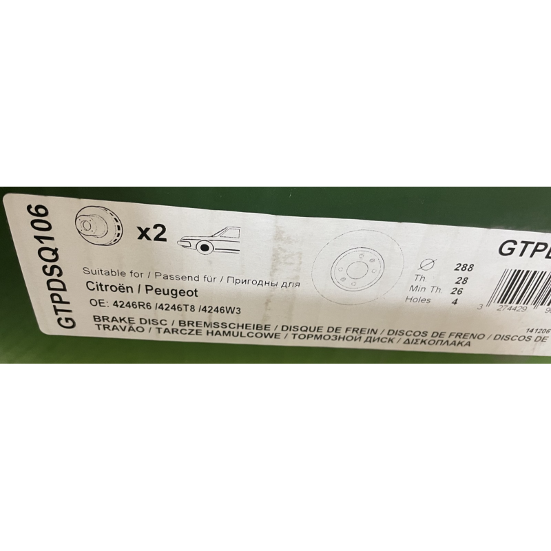 2x DISQUE DE FREIN CITROËN/ Peugeot 4246R6, 4246T8, 4246W3 GTPDSQ106