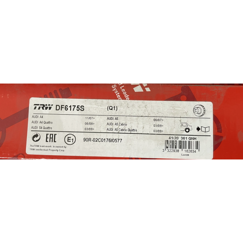 Disque de frein (à l'unité) TRW DF6175S AUDI Q5 2.0 TDI quattro