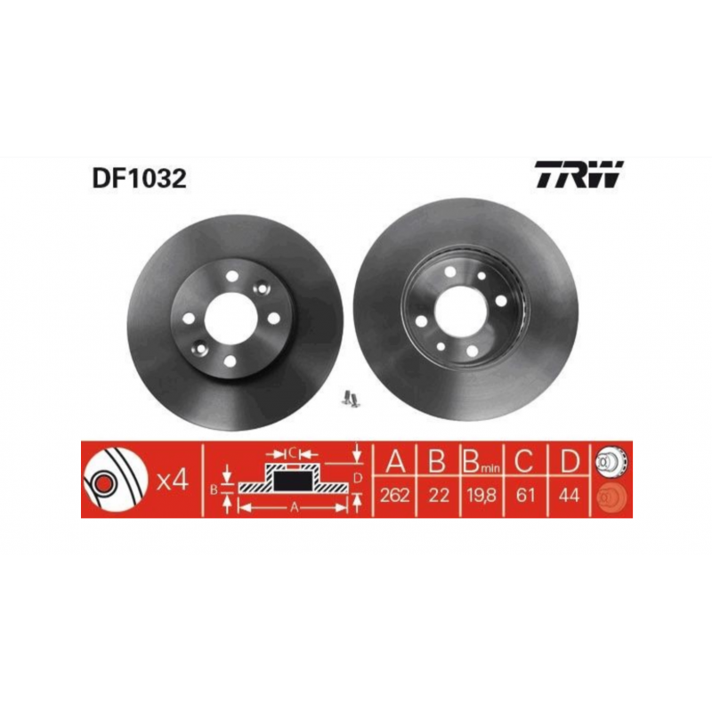 TRW DF1032 Disque de frein 262x22mm, 4x100 RENAULT LAGUNA MEGANE SAFRANE