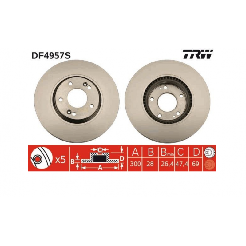 TRW DF4957S Disque de frein pour HYUNDAI,KIA,KIA (DYK)