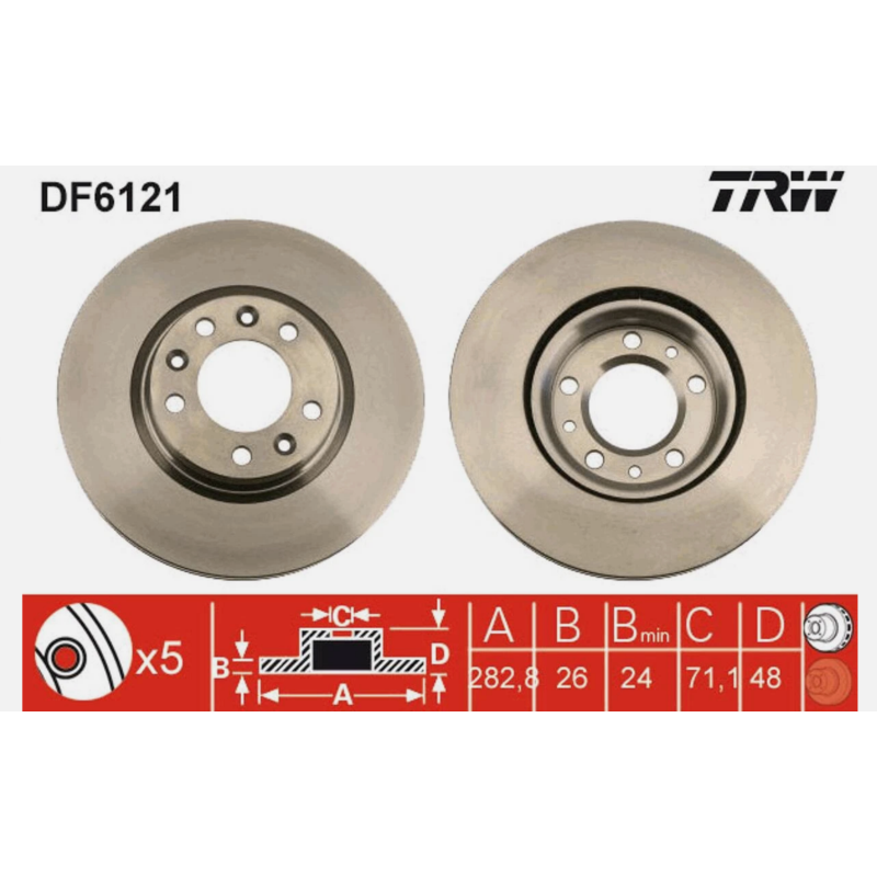 Jeu de 2 disques de frein TRW DF6121 PEUGEOT 407 2.0 HDi 135
