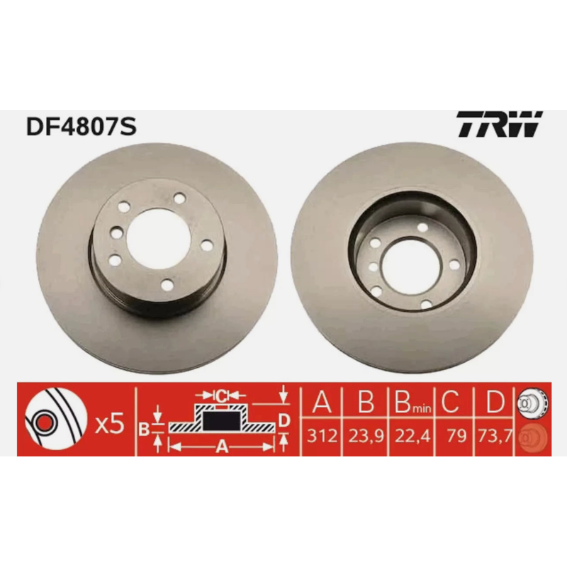 2 x TRW Disque de frein TRW DF4807S BMW Série 3 2.0 320