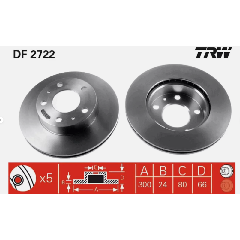 Jeu de 2 disques de frein TRW DF2722 FIAT DUCATO 2.3 D 130