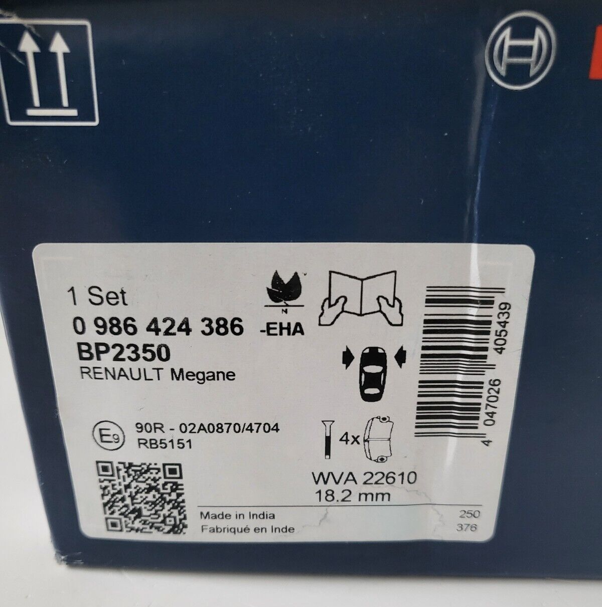 BOSCH Jeu de 4 plaquettes de frein à disque réf 0 986 424 386