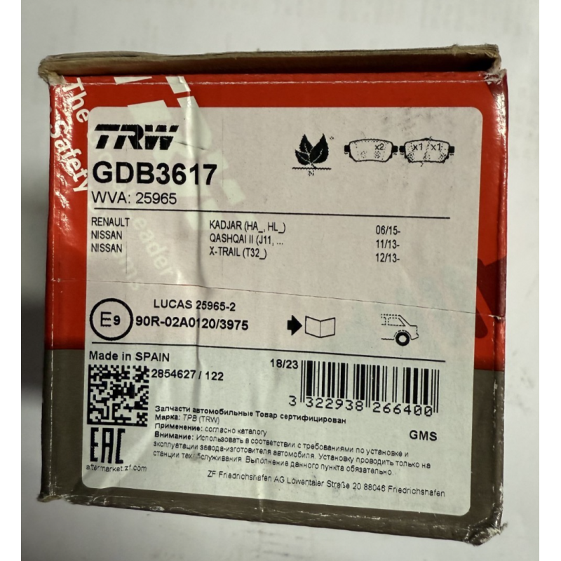 TRW - Plaquettes de frein jeu de plaquettes de frein arrière GDB3617