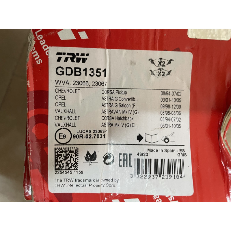 Jeu de plaquettes de frein avant TRW GDB1351 OPEL ASTRA 1.4 16V (F08, F48)