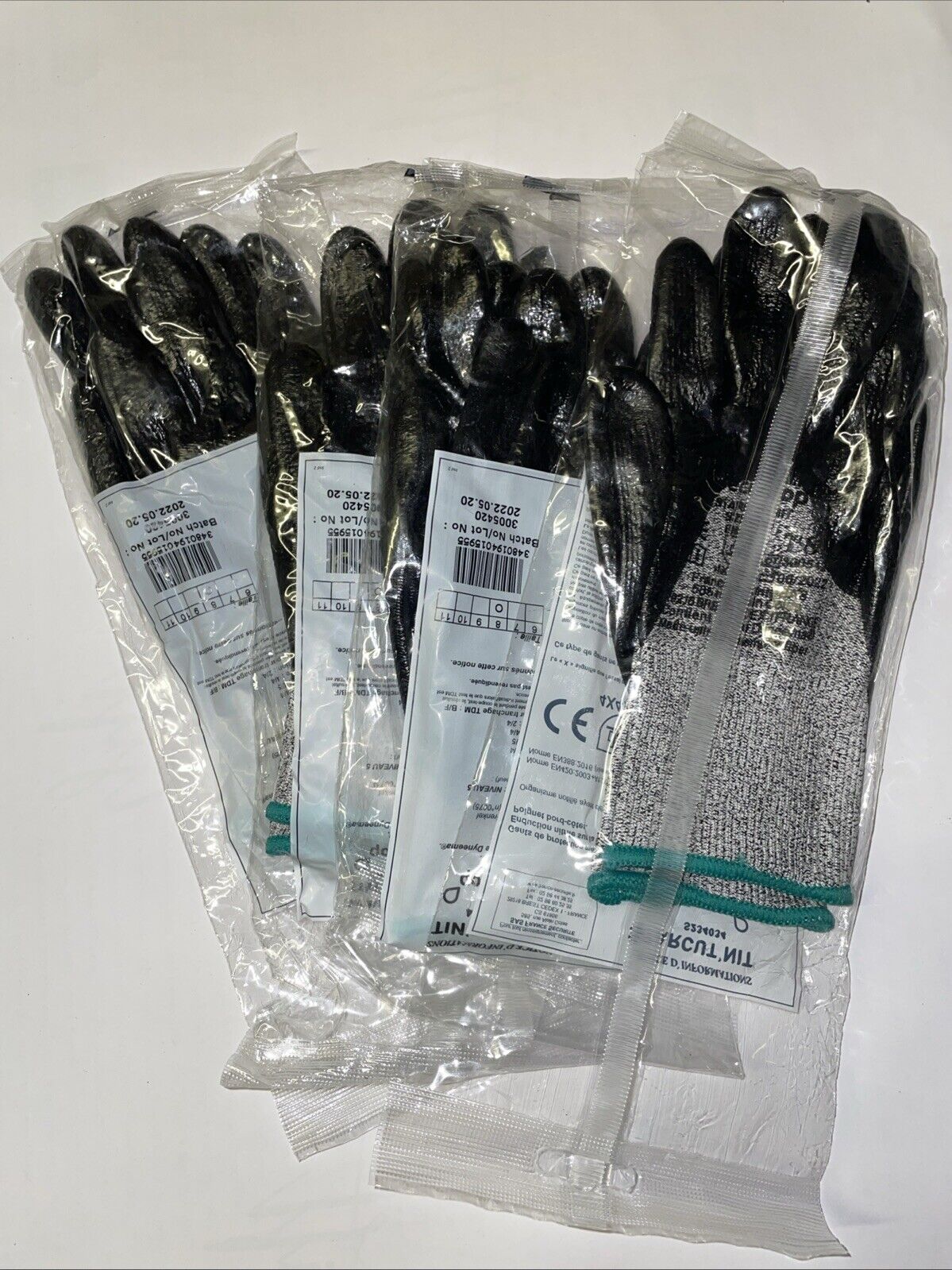Lot de 4 paires Gants anti-coupure - Sécuritop - enduction nitrile Taille M