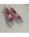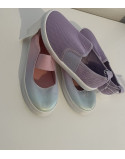 Tennis en mesh sans lacets avec élastique sur les côtés et patte d'enfilage sur l'arrière qui facile l'enfilage.