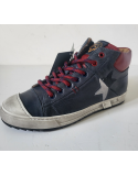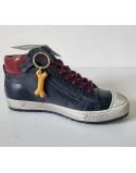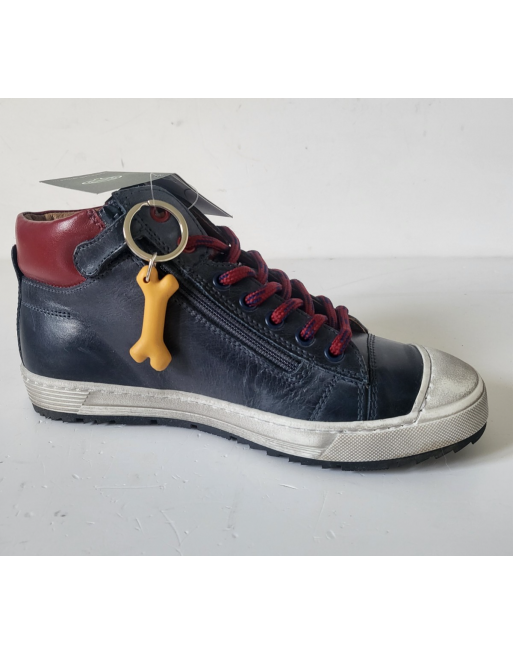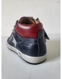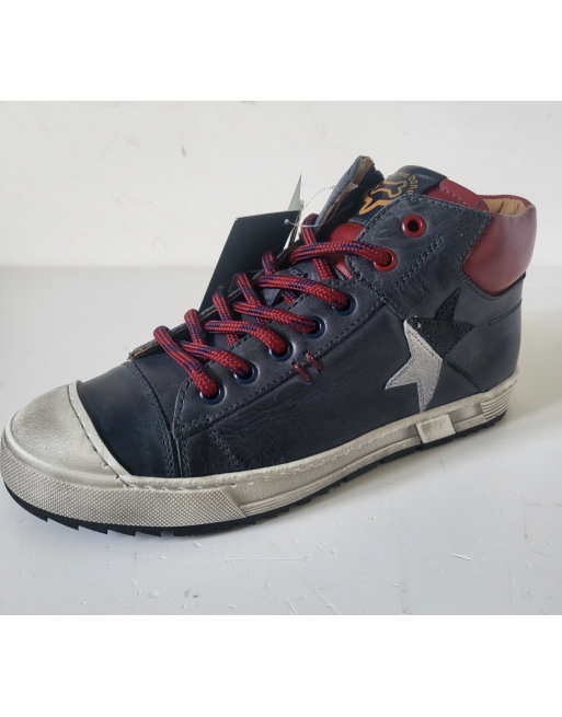 Baskets montantes cuir marine / rouge lacets