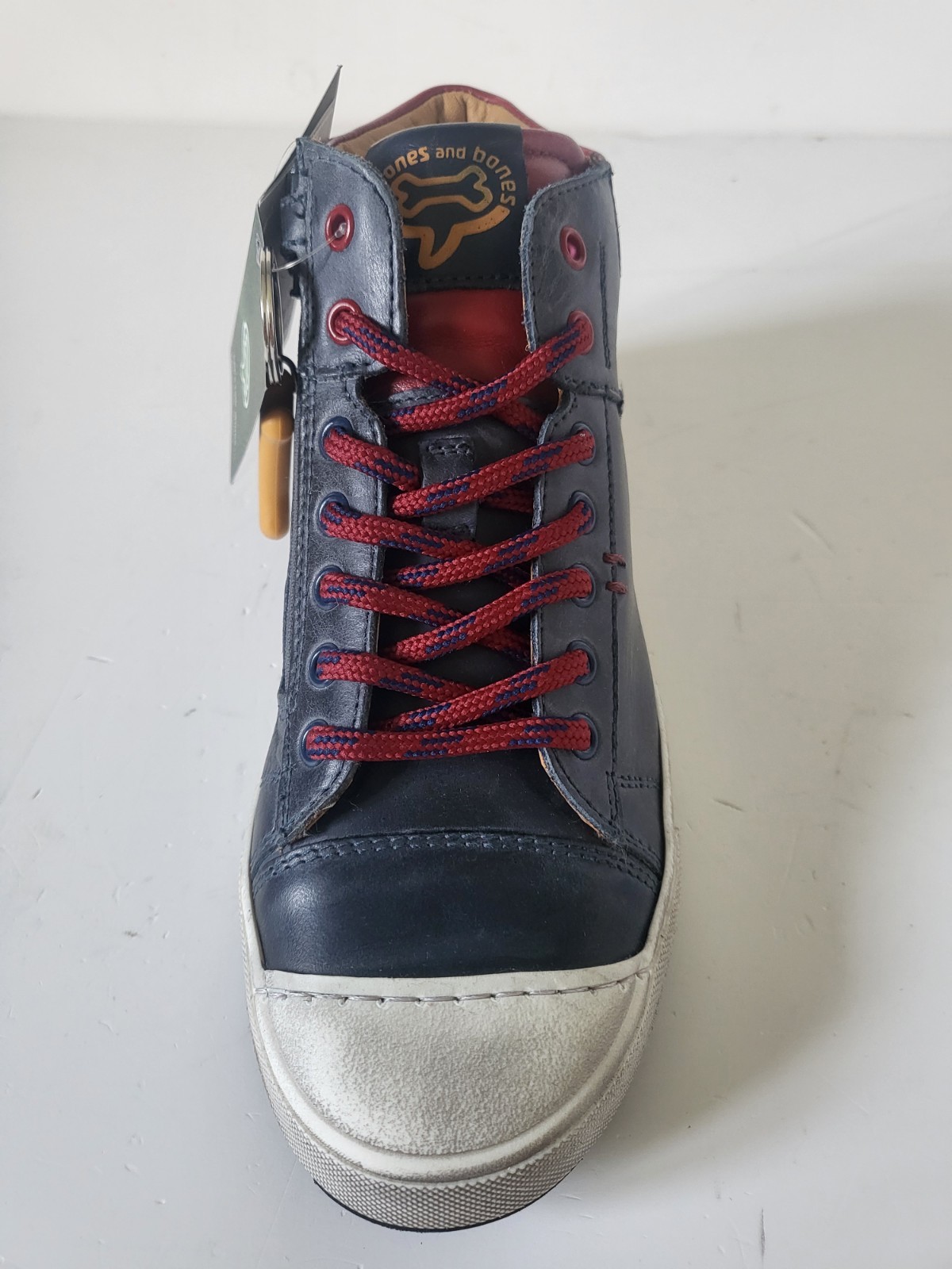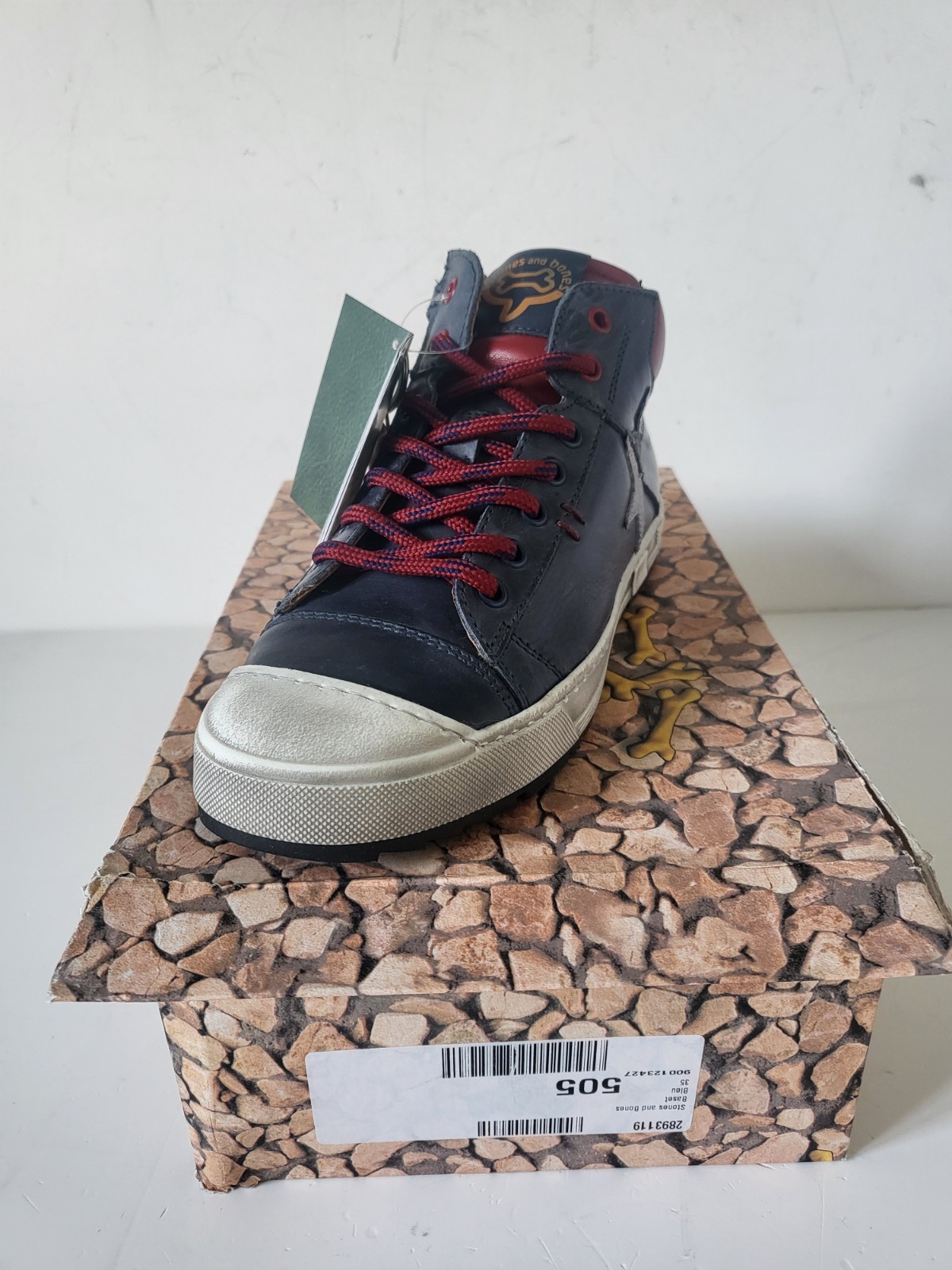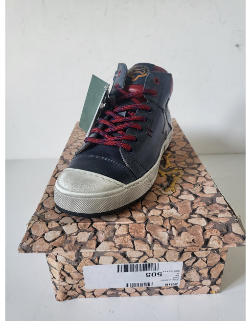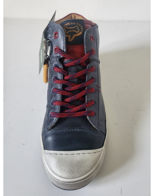 STONES & BONES Baskets montantes cuir marine / rouge lacets Taille 35