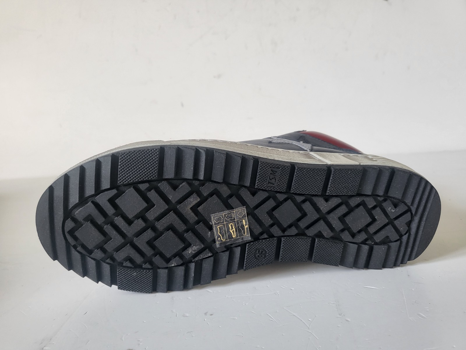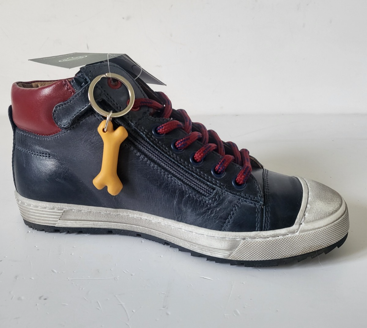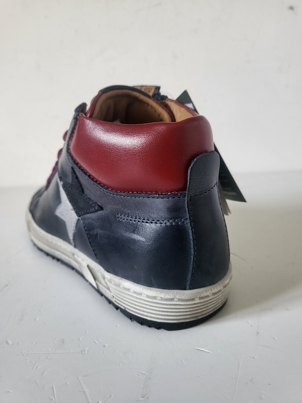 STONES & BONES Baskets montantes cuir marine / rouge lacets Taille 35
