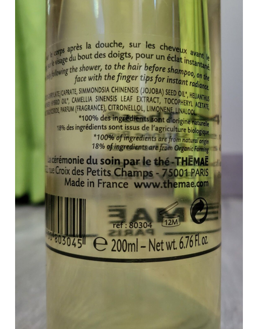 THEMAE Huile des 4 thés huile sèche satinée bio visage corps cheveux 200 ml