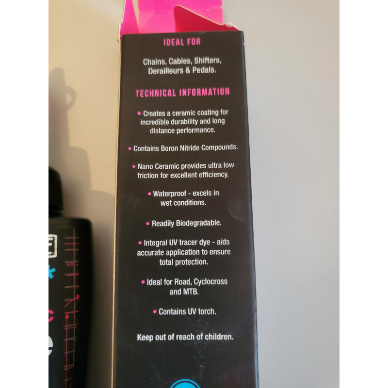 Formule spécifique à base de fluoropolymère et de nano particules de céramique : le lubrifiant le plus efficace du marché. Cette version conditions humides dépose une couche de céramique spécifiquement préparée pour éviter à la boue de se coller tout en étant résistant à l'eau. Il vous assurera une transmission douce et précise sur de longues distances et dans les conditions les plus difficiles.