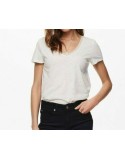 ONLY T Shirt femme blanc cassé coton organique col V brodé réf 15231211 (GLS)