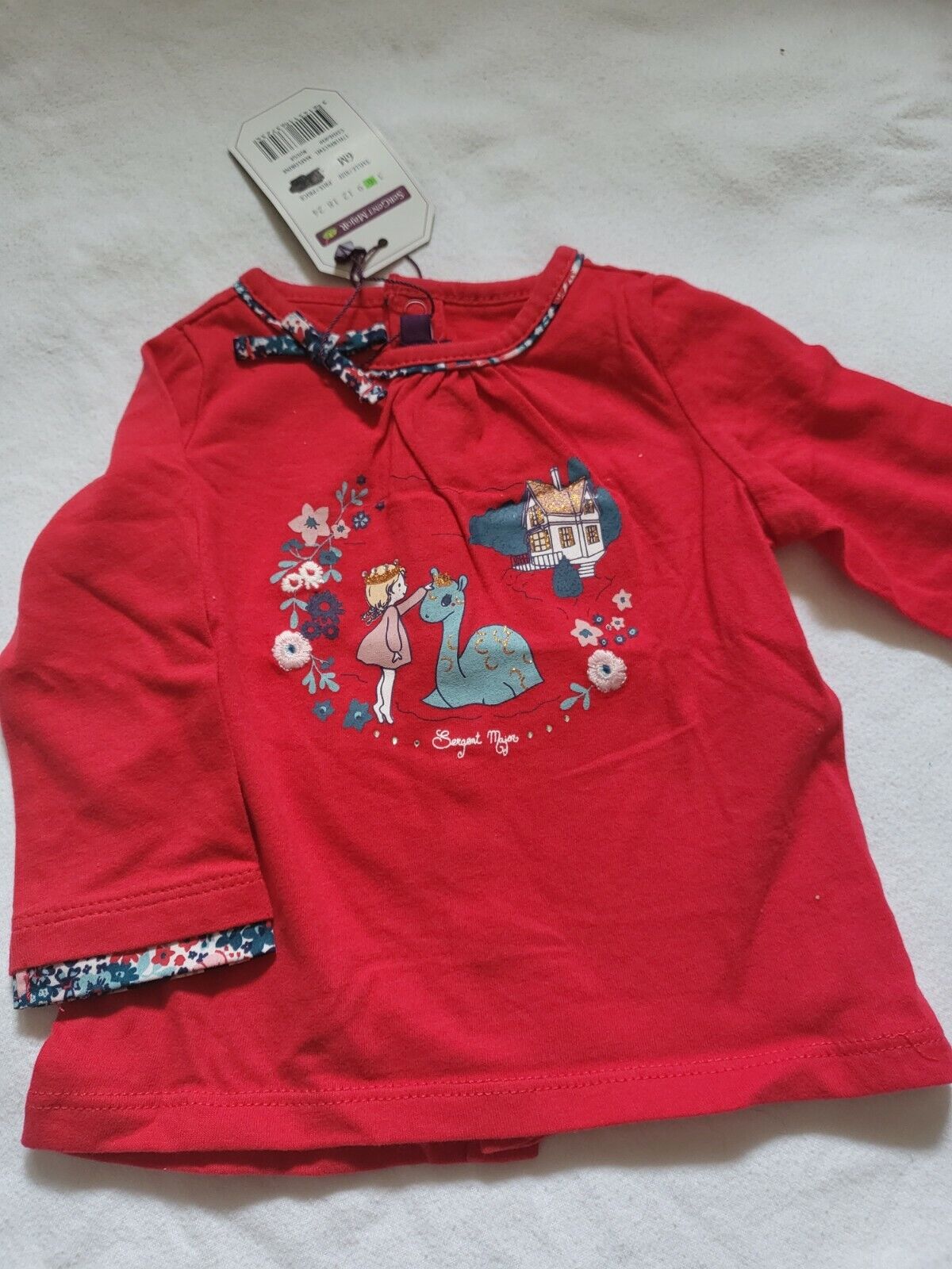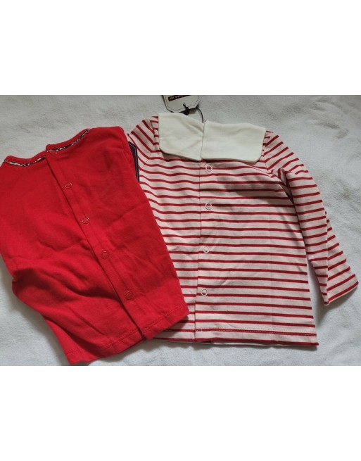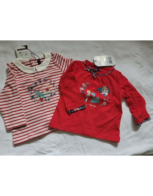 SERGENT MAJOR Lot de 2 tee shirts Maflorine rouge + Mafostine rayé Taille 6 mois