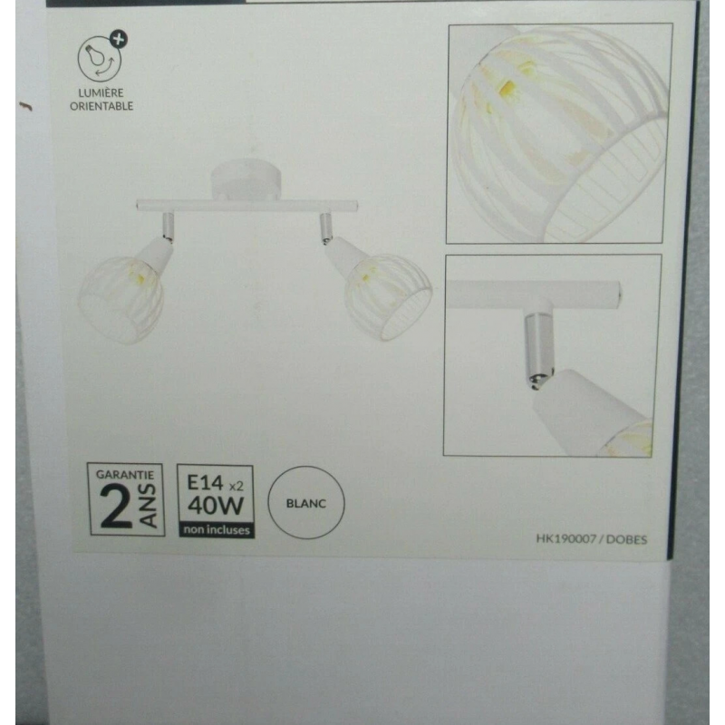 PLAFONNIER 2 LAMPES DESIGN ORIENTABLES FLOW BLANC METAL réf HK190007