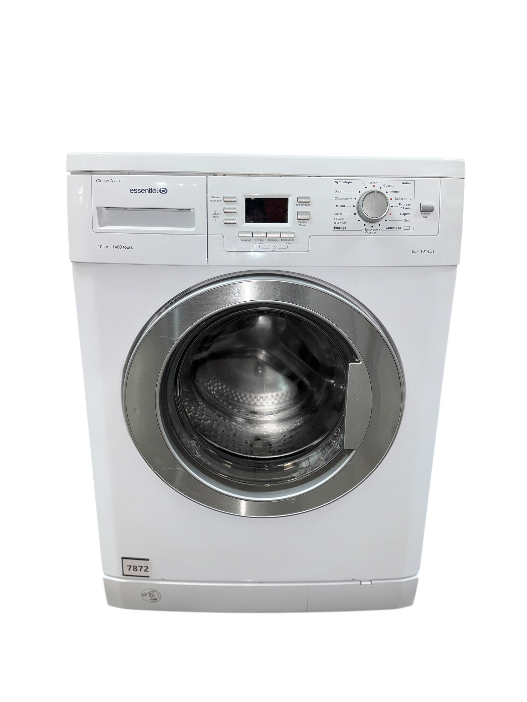 Lave-linge Essentiel B ELF1014D1 – Capacité 10 kg & essorage jusqu’à 1400 tours/min 🧺✨ Découvrez ce modèle disponible chez Maxdeal, reconditionné et garanti 1 an ! Optez pour ce lave-linge frontal Essentiel B ELF1014D1, un appareil idéal pour un foyer recherchant volume et efficacité.  Caractéristiques principales : • 🔘 Capacité : 10 kg — parfaitement adapté pour une famille ou un usage fréquent.  • 💨 Essorage maximum : 1400 tours/min — pour un linge bien essoré.  • ⚙️ Classe énergétique : A+++ (ancien étiquette) — excellente performance pour ce type d’appareil.  • 📏 Dimensions approximatives : ~ 84 cm (H) x 60 cm (L) x 62 cm (P) — format standard frontal.  • 💡 Points à noter : grand volume, multiple programmes (ex : coton, synthétique, rapide) et bon essorage — très bon choix pour un reconditionné. 🔒 Garantie : 1 an État : Reconditionné – testé, vérifié, prêt à l’emploi. 🧩 Tous nos appareils électroménagers sont reconditionnés : ils peuvent présenter quelques légers défauts esthétiques (micro-rayures, petites marques ou légers coups), sans aucune incidence sur leur bon fonctionnement ni leurs performances. REF : LLH7872