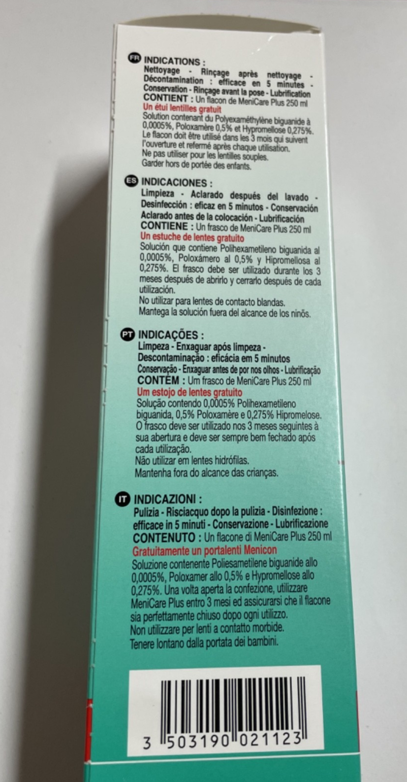 Le produit MENICARE PLUS élaboré par MENICON est destiné à l'entretien exclusif des lentilles rigides, il :