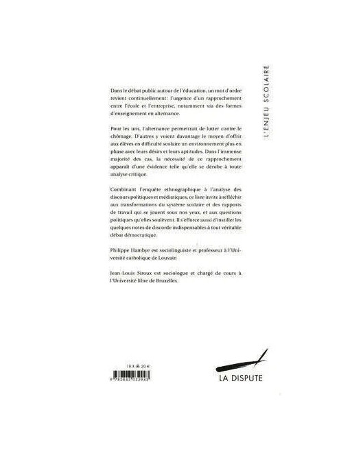 Dans l'immense majorité des cas, la nécessité de ce rapprochement apparaît d'une évidence telle qu'elle se dérobe à toute analyse critique. Combinant l'enquête ethnographique à l'analyse des discours politiques et médiatiques, ce livre invite à réfléchir aux transformations du système scolaire et des rapports de travail qui se jouent sous nos yeux, et aux questions politiques qu'elles soulèvent. Il s'efforce aussi d'instiller les quelques notes de discorde indispensables à tout véritable débat démocratique.