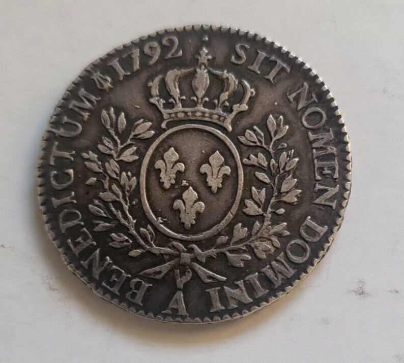 Avers : Buste de Louis XVI à gauche, portant une veste brodée, l'ordre du Saint-Esprit et les cheveux noués sur la nuque par un ruban