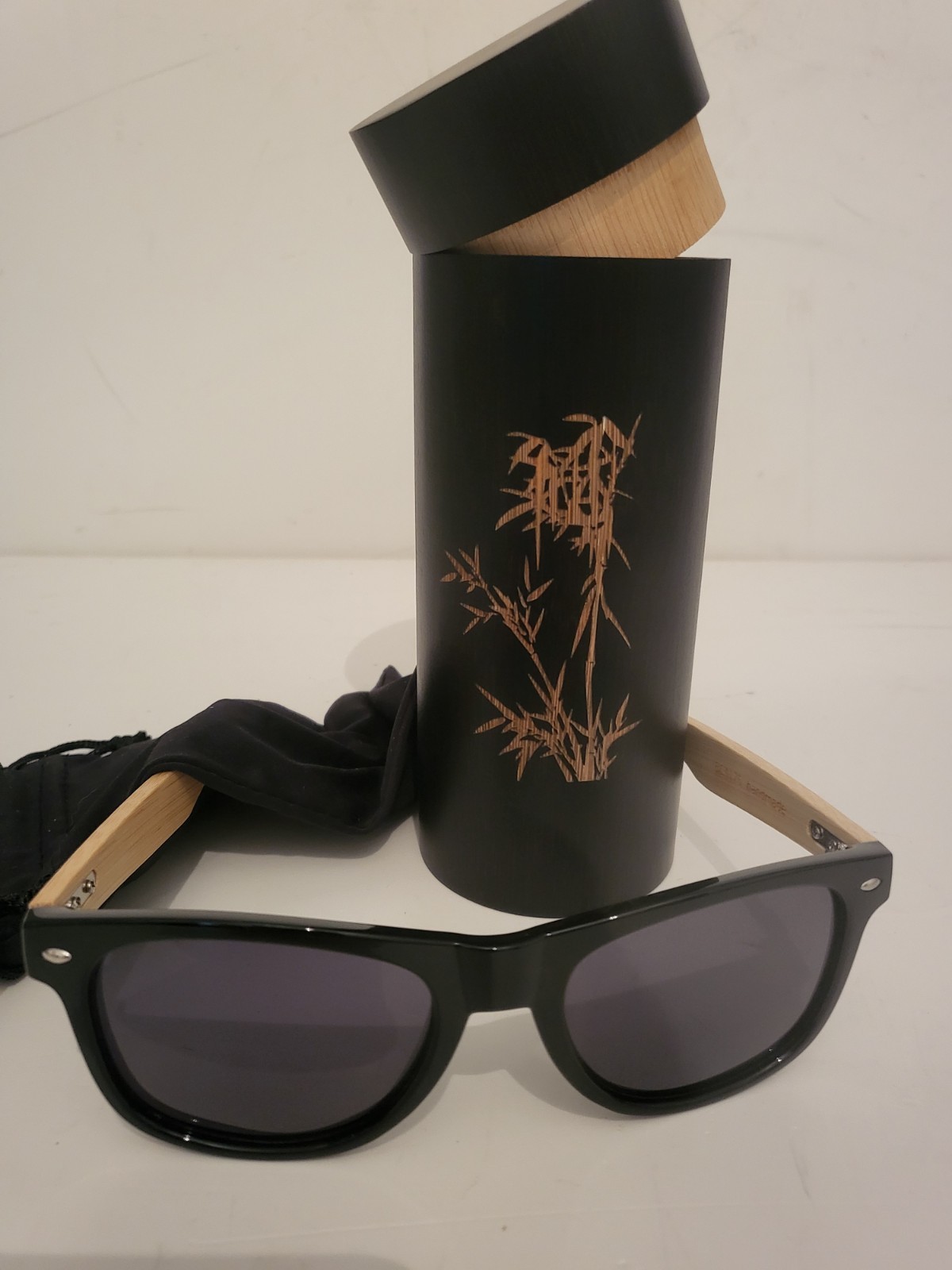 BARCUR Lunettes de soleil branches bambou fait main avec boite bambou noire