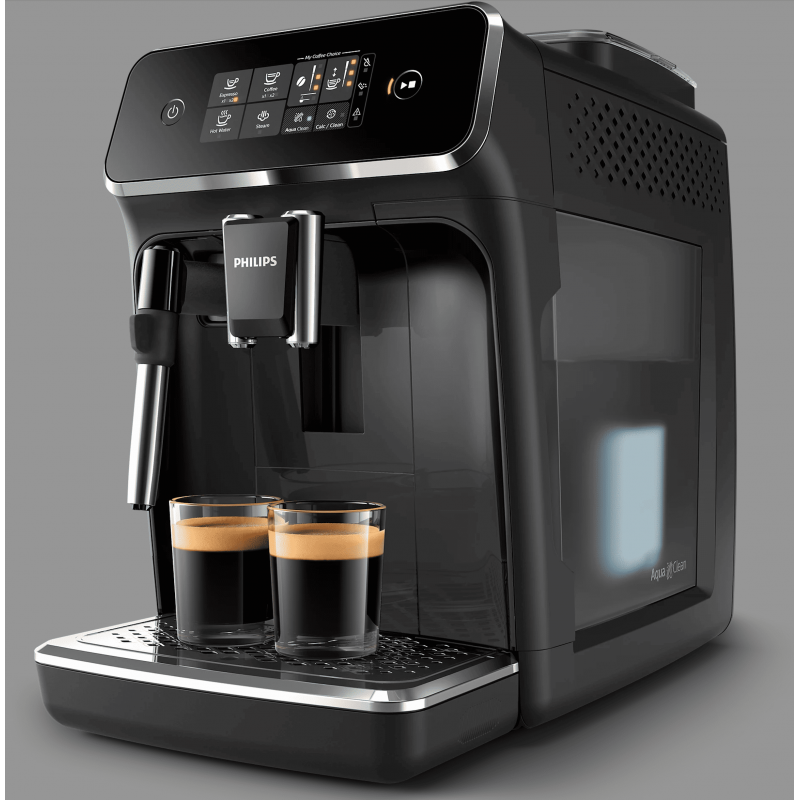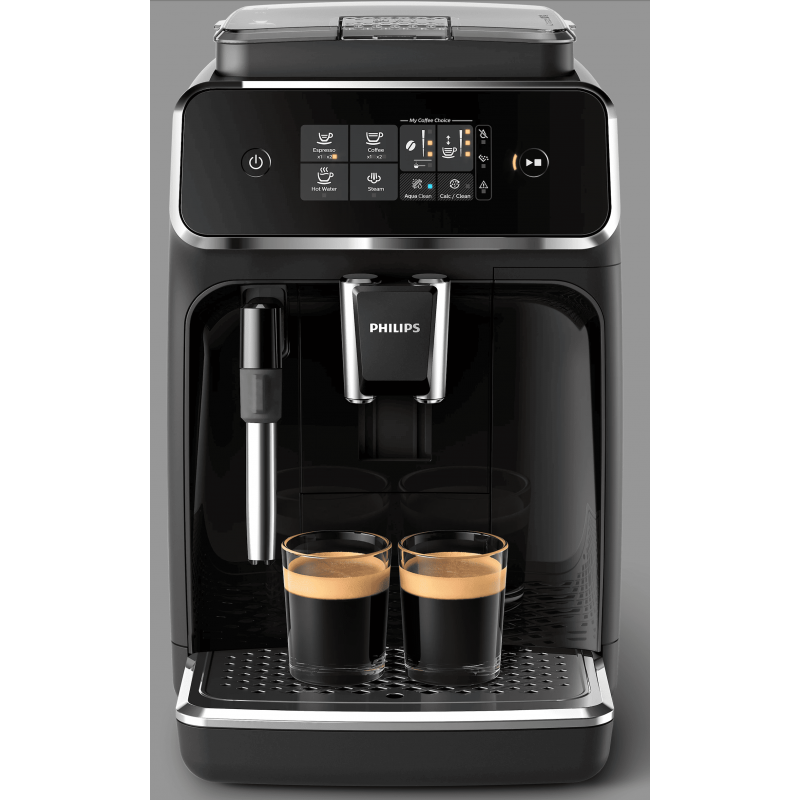 🌟 Machine à café Philips EP2221 – Automatique, Moderne et Aromatique ☕ La Philips EP2221 (série 2200) est une machine à café automatique à grains, conçue pour offrir un café de qualité barista avec simplicité. Compacte, élégante, elle combine broyage précis, mousse de lait et nettoyage facilité. ⸻ ✨ Caractéristiques principales : • 🔘 Boissons personnalisées : Espresso, café, eau chaude – sélection facile via écran tactile  • ⚙️ Moussage manuel : Panne à vapeur “Classic Milk Frother” pour cappuccino crémeux  • 🧠 Réglages ajustables : Intensité (3 niveaux), température (3 niveaux), quantité, moulin céramique 12 niveaux  • 💧 Système AquaClean : Jusqu’à 5000 tasses sans détartrage grâce au filtre intégré  • 🔄 Entretien simplifié : Groupe d’infusion amovible, nettoyage automatique guidé, pièces compatibles lave-vaisselle (bac, mousseur) • 🔒 Conservation des arômes : Moulin en céramique robuste pour 20 000 cafés, couvercle hermétique “Aroma Seal”  ⸻ 📏 Dimensions : 24,6 × 37,1 × 43,3 cm | Poids : 7,5 kg 💧 Réservoir : 1,8 L | Capacité grains : 275 g 🔧 Pompe : 15 bar | Énergie : Classe A ⚙️ Alimentation : 230 V / 1500 W 📜 Garantie : 2 ans ⸻ 📌 La Philips EP2221, c’est une machine élégante et intuitive, parfaite pour ceux qui veulent savourer un café de qualité sans complication. Compacte, fiable, personnalisable et facile à entretenir – un excellent compagnon pour votre pause café quotidienne. 💡
