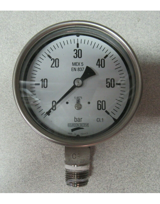 BOURDON SEDEME MEX5 EN 837 MANOMETRE 0-60 BARS CI.1 Ø100 mm