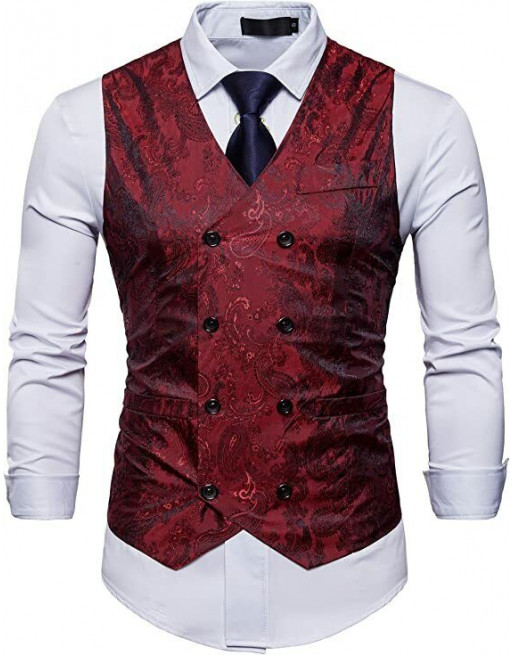 Showu Paisley Gilet Homme Sans Manches Slim Fit double boutonnage